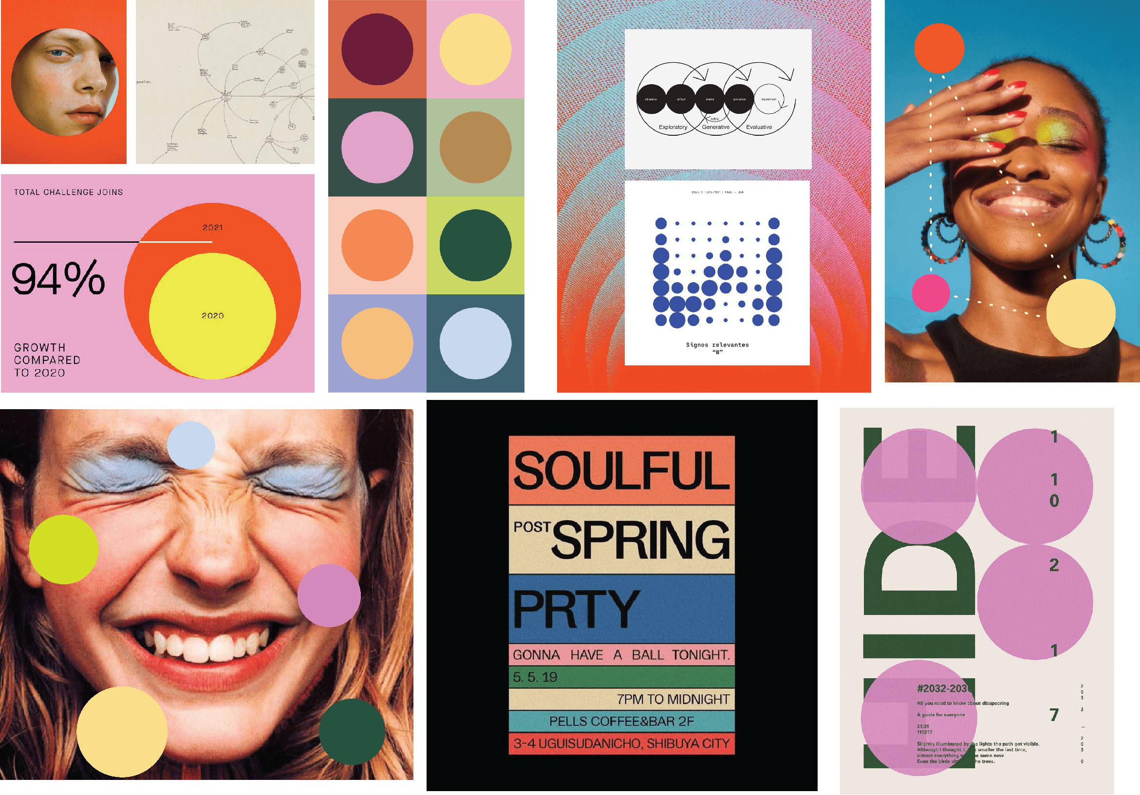 We explore these connections through circles and paths: soft, approachable shapes linked by jagged, energetic lines.